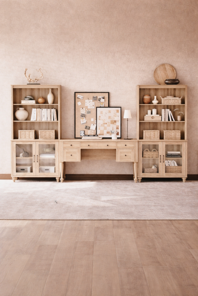 πͺ΅ 16. Wooden Desk with Bookshelf (Multi-Functional Setup)